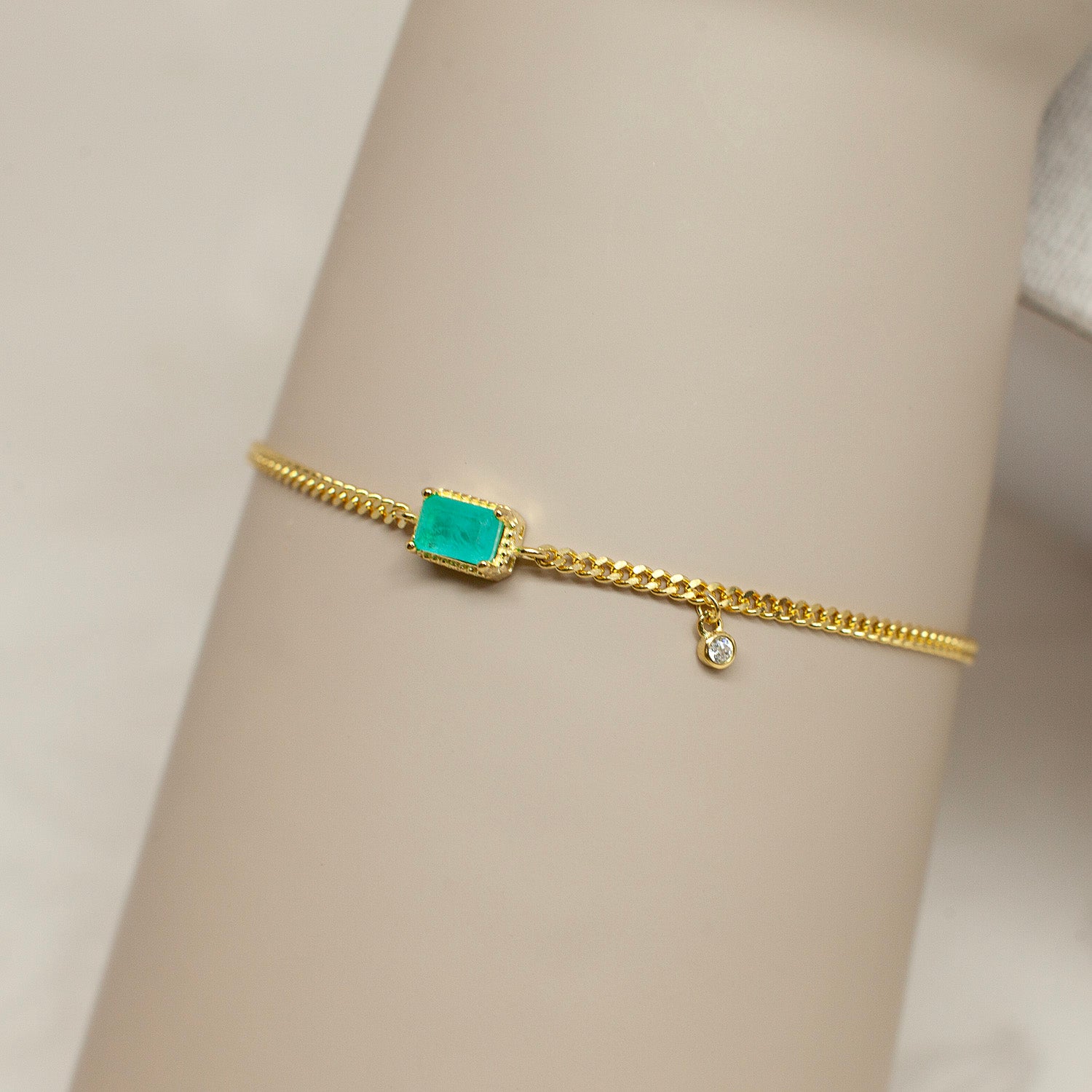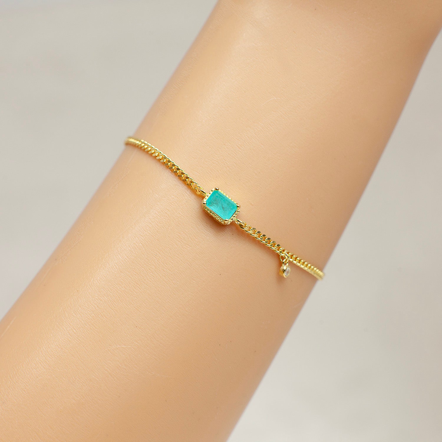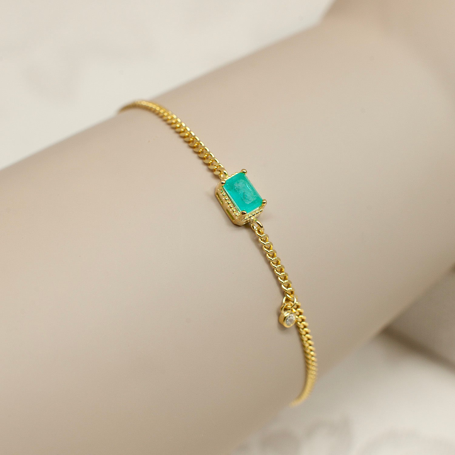 Sterling Silver Bracelet: Green Cubic Zirconia Stone