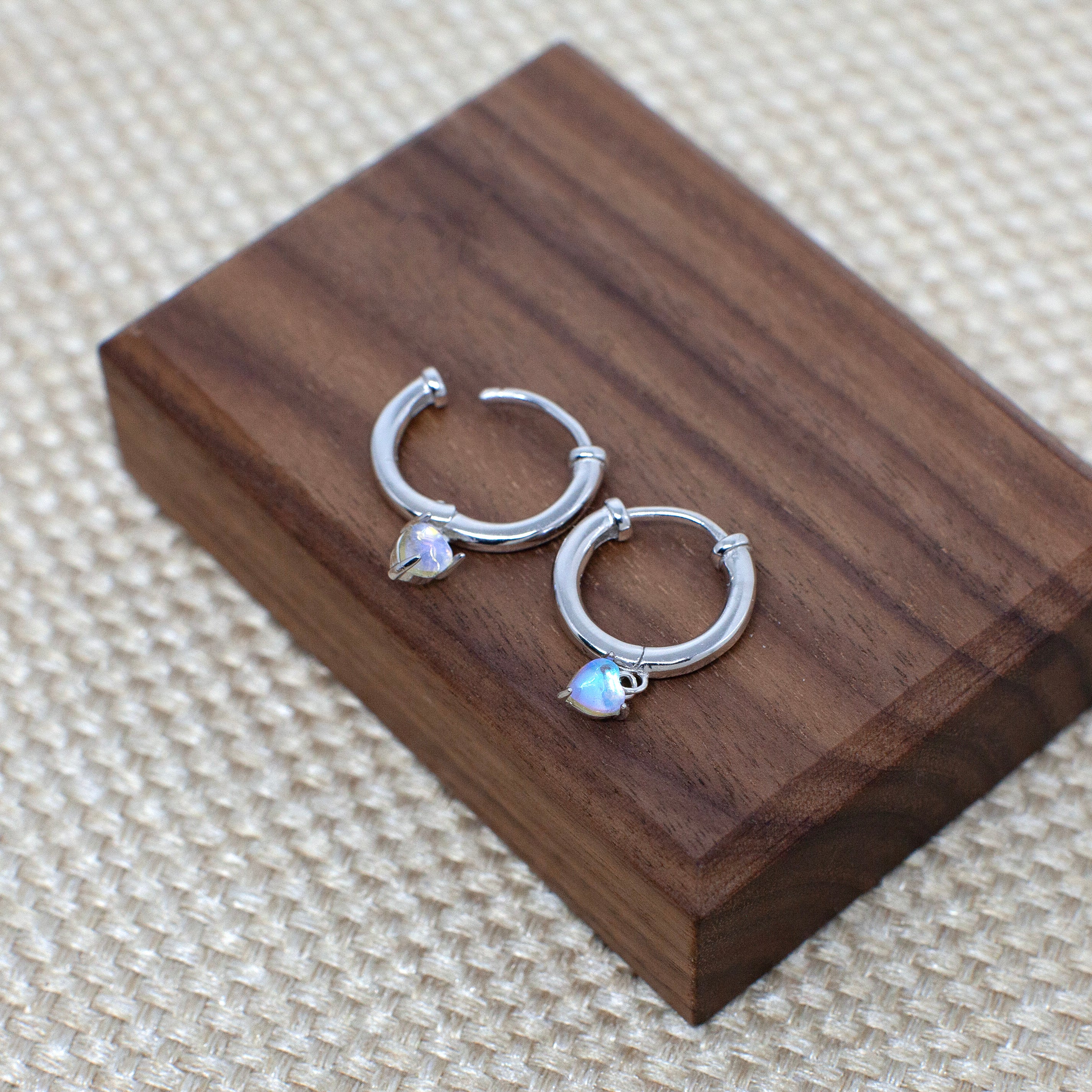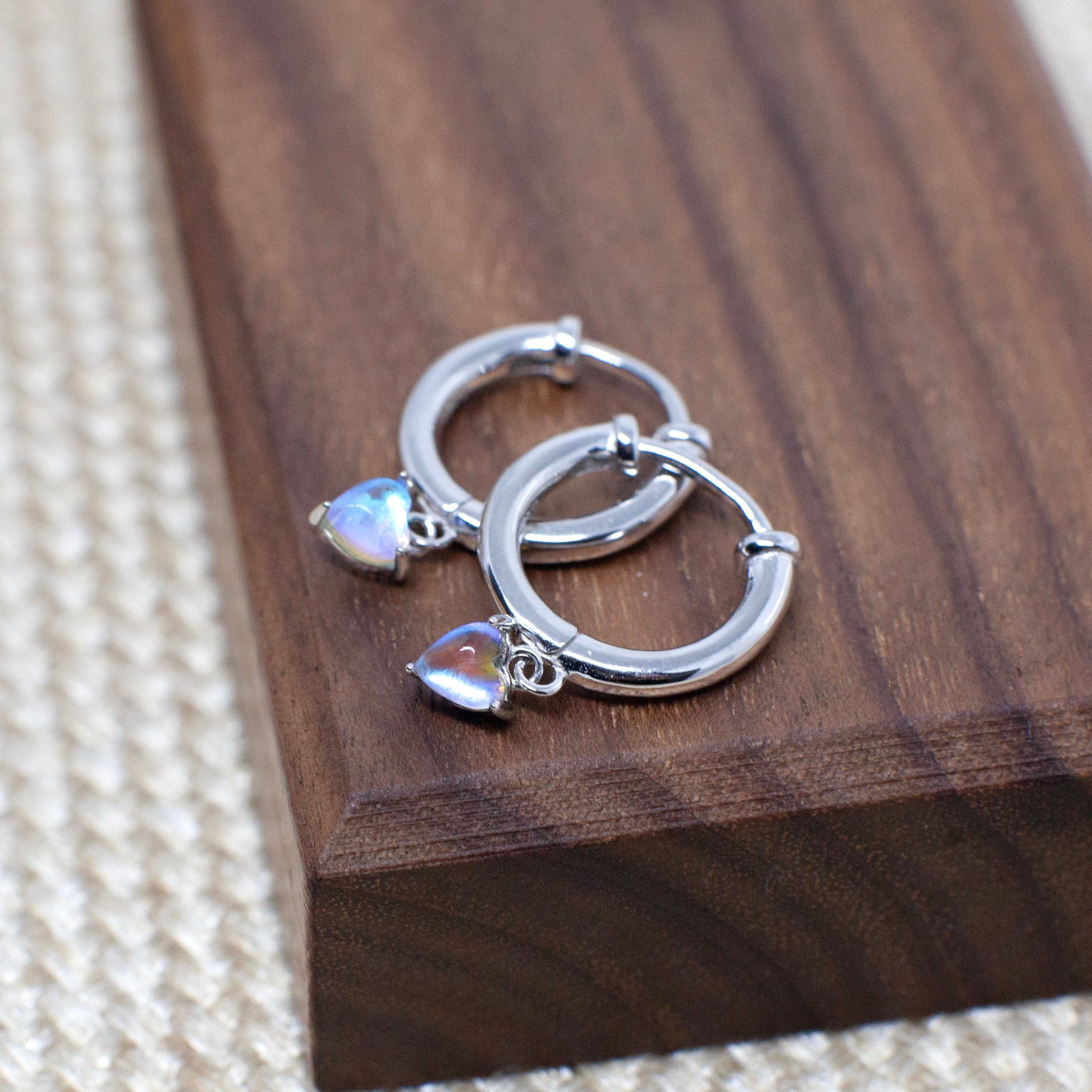 Moonstone Heart Hoops